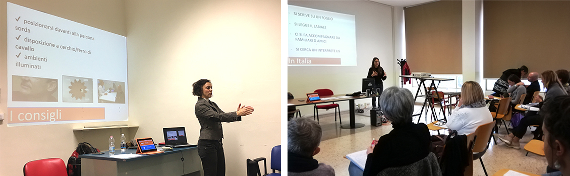 Corso di formazione in ambito aziendale sul tema dell'accessibilità in LIS (immagine a sinistra)