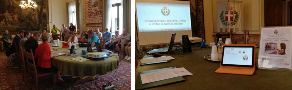 Dal 1 luglio, presso gli uffici comunali del Comune di Treviso è disponibile il servizio di video-interpretariato in lingua dei segni italiana (LIS) tutti i giorni per facilitare la comunicazione tra personale interno del Comune e cittadini sordi.