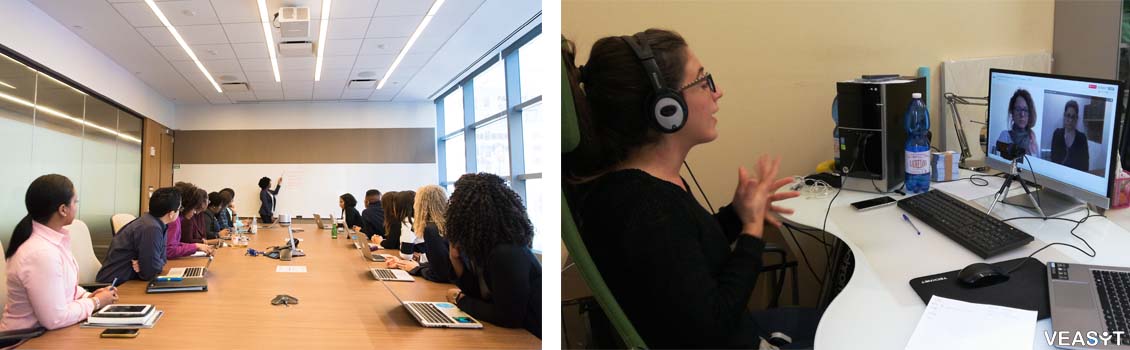 La sala è stata predisposta per una “normale” lezione frontale, con relatore e schermo di proiezione, e i partecipanti seduti ad assistere. A Caterina, seduta assieme ai colleghi, è stato semplicemente messo a disposizione un computer portatile dal quale è stata avviata la video-chiamata con interpreti sulla piattaforma VEASYT Live!.