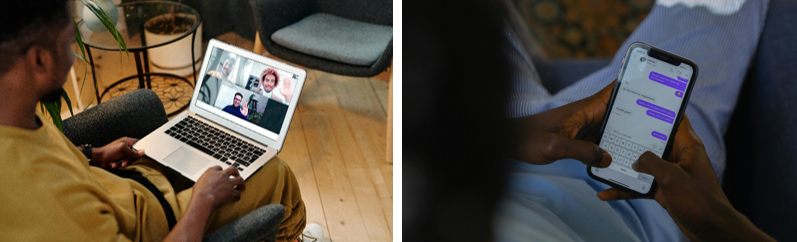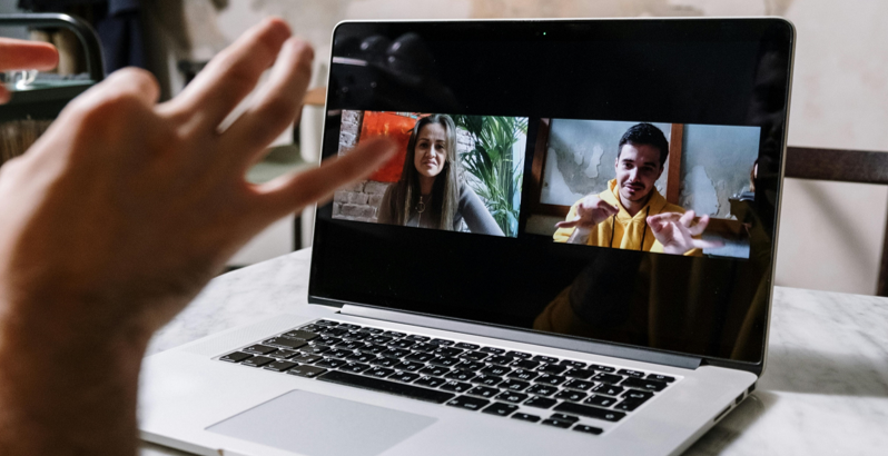 A sinistra una persona in videochiamata tramite computer.