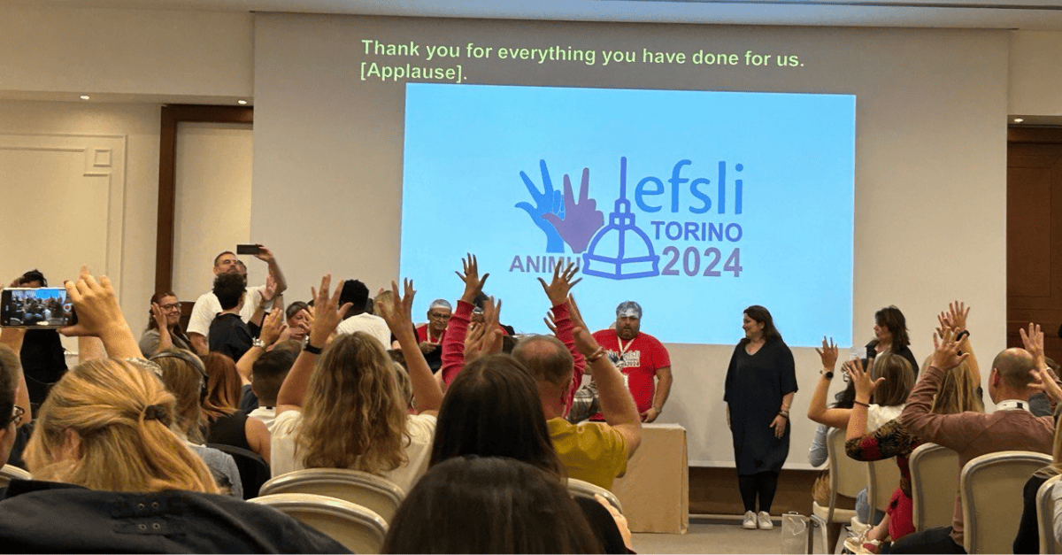 Questo evento viene organizzato dal comitato EFSLI (Forum Europeo di Interpreti di Lingue di Segni) annualmente in un Paese differente e quest’anno EFSLI 2024, organizzato dall’associazione italiana di interpreti di lingua dei segni ANIMU, si è tenuto proprio qui in Italia, a Torino, dal 13 al 15 settembre!