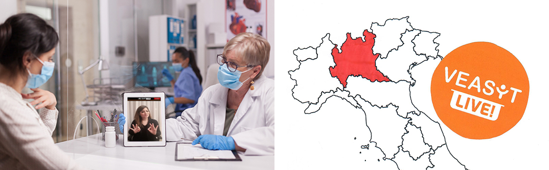 Il cittadino sordo che ha bisogno di un interprete italiano-LIS per comunicare con un operatore del servizio sociosanitario regionale lombardo, può usufruire del servizio direttamente dal proprio dispositivo (computer, smartphone o tablet) scaricando l’app VEASYT Live!.
