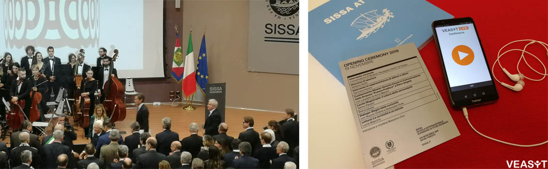 Grande emozione e soddisfazione per il perfetto svolgimento del servizio di interpretariato simultaneo da remoto VEASYT Conference all’evento di inaugurazione dell’Anno Accademico della Scuola Internazionale Superiore di Studi Avanzati (SISSA), tenuto a Trieste il 19 novembre 2019 alla presenza del Capo dello Stato, Sergio Mattarella