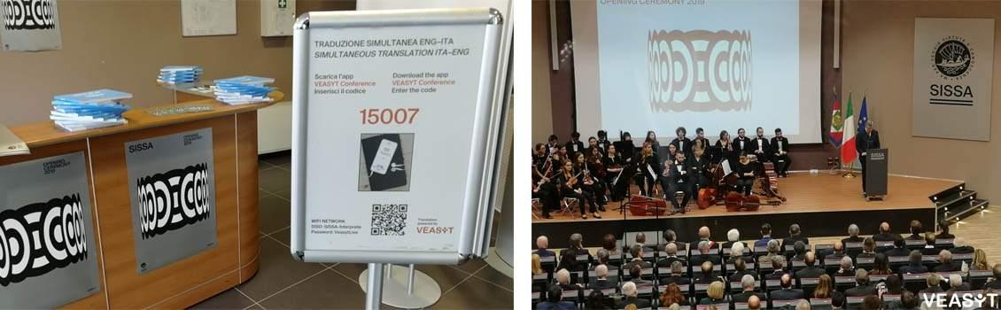 Per questo importante appuntamento, la SISSA ha deciso di adottare l’innovativa tecnologia di VEASYT Conference per garantire in modo semplice e innovativo il servizio di interpretariato italiano - inglese agli studenti e agli ospiti di lingua straniera presenti in sala. Garantire la traduzione simultanea durante l’evento, e durante il discorso del Presidente della Repubblica è stato un grande orgoglio per tutti noi di VEASYT.