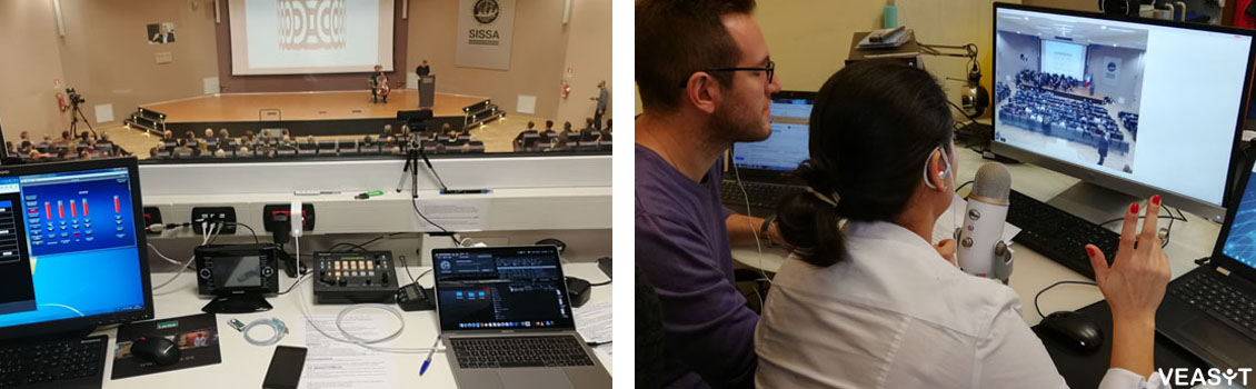 Il servizio di interpretariato da remoto VEASYT Conference su application per la SISSA di Trieste (destra)