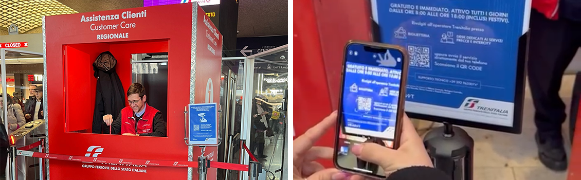 Quest’ultimi, presso le biglietterie ed i desk vendita, possono comunicare con l’operatore FS senza nessuna difficoltà in quanto la traduzione simultanea rende il servizio completamente accessibile, garantendo che ogni passeggero possa comunicare in modo chiaro ed efficiente.